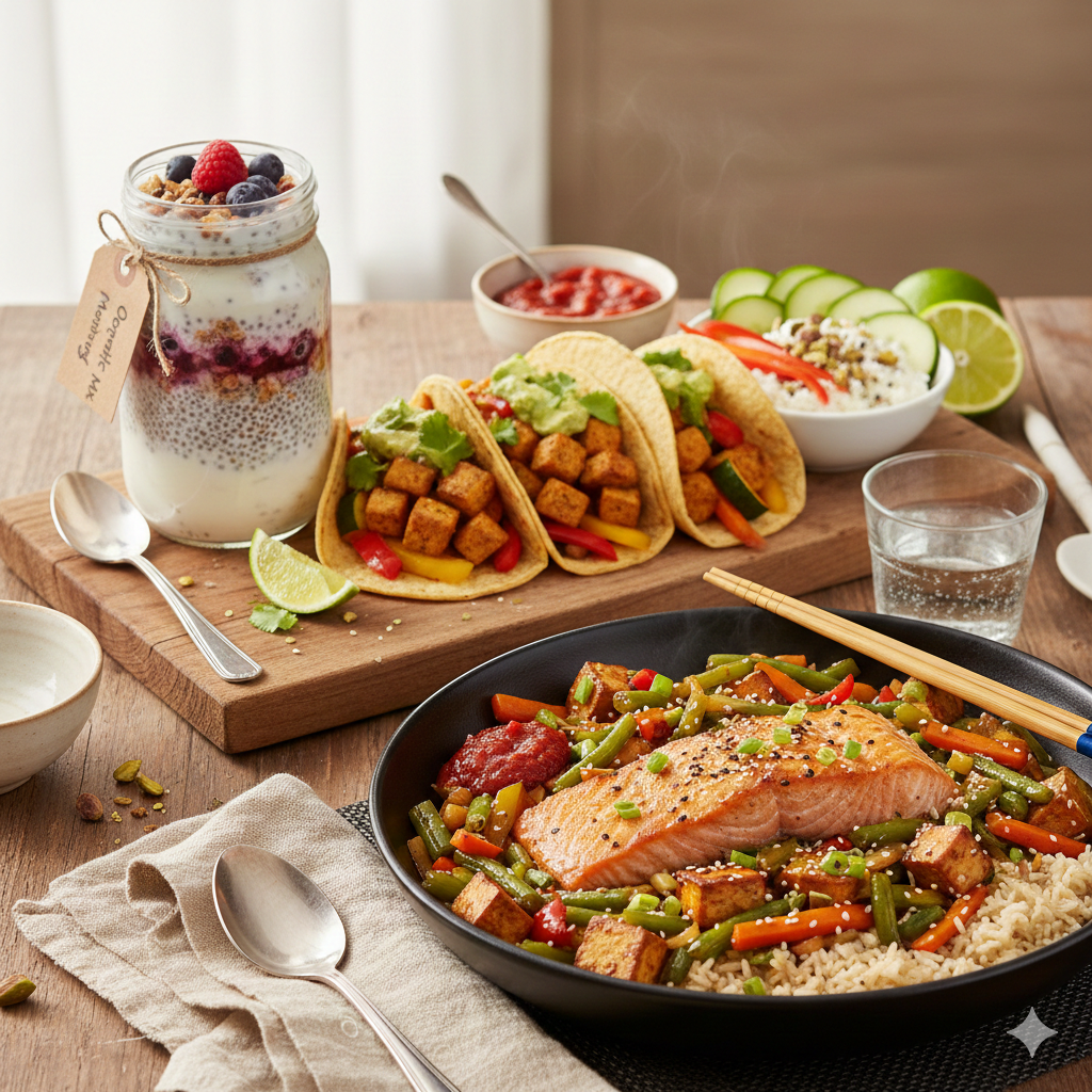 A customizable stir fry is the ultimate weeknight rescue meal. Start with firm tofu and quick-cooking, gut-friendly vegetables such as green beans, carrots, and green bell pepper. Serve over brown rice and season with simple ingredients like sesame oil and coconut aminos (a soy sauce alternative). Remember that how you eat is as important as what you eat. Even when rushing, take time to relax, chew your food thoroughly, and pay attention to fullness cues to prevent post-meal gastrointestinal discomfort.